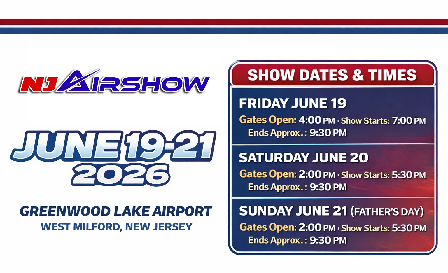 Held in West Milford, New Jersey, over Father’s Day Weekend, the 2026 NJ Airshow takes on added significance as the nation marks its 250th anniversary. This year’s airshow will feature a special patriotic tribute honoring our country’s history, service, and spirit.
