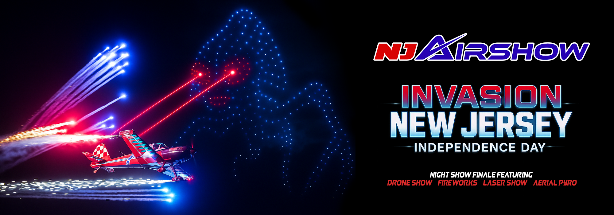 The NJ Airshow is unlike any other airshow in the country—a fully immersive day-into-night aviation event featuring some of the world’s top airshow performers. The show begins with high-energy daytime aerobatics, then seamlessly transitions into a nighttime spectacle filled with aircraft pyrotechnics, lasers, fireworks, towering fireballs, and a choreographed drone show. With illuminated aircraft, pyro launched from the wings, and drones painting a story across the sky, the entire airfield transforms into a high-energy festival. As the only three-night airshow in the nation, the NJ Airshow delivers a night show that you must see to believe.